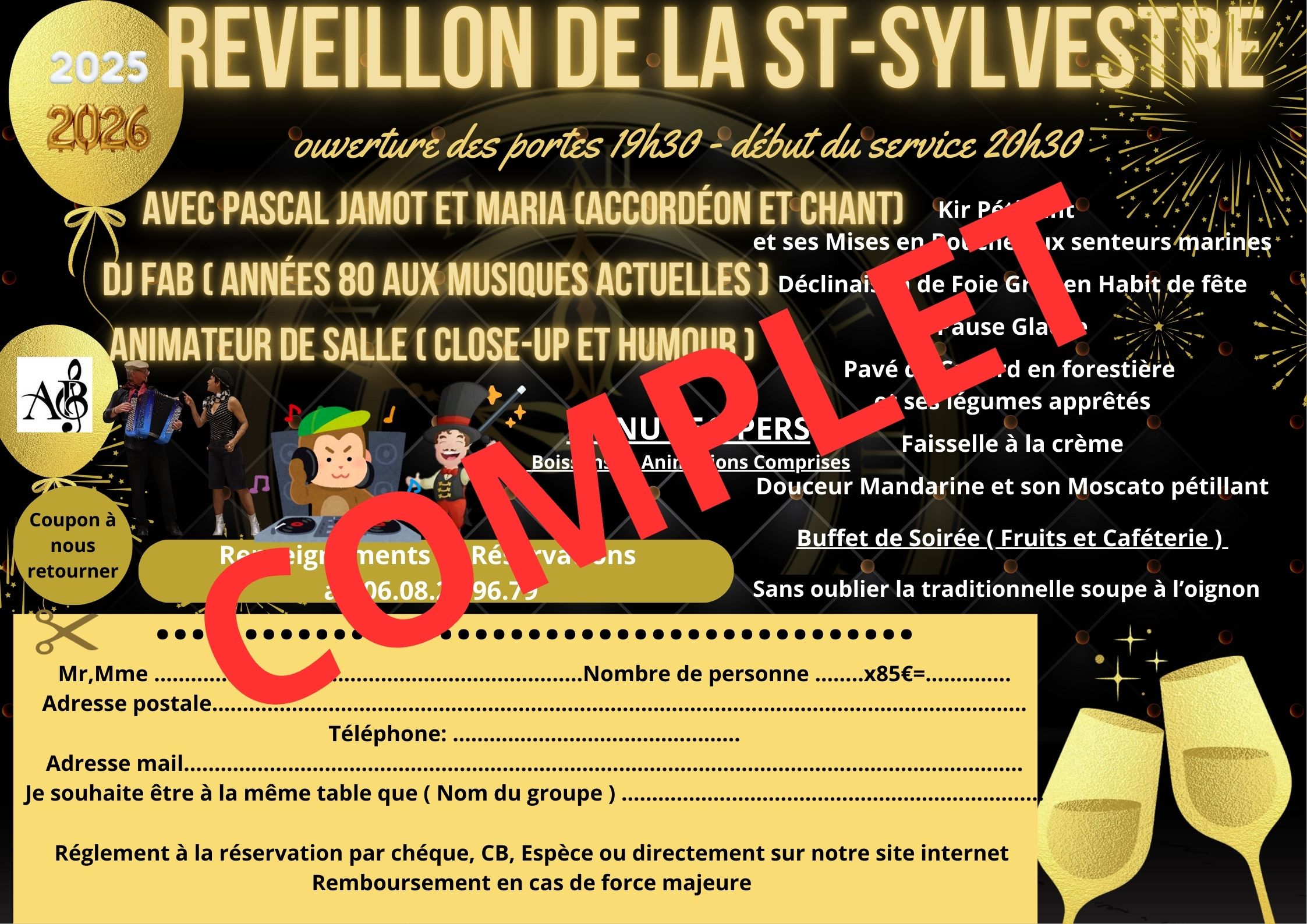 MERCREDI 31 DECEMBRE – REVEILLON DE LA ST SYLVESTRE – COMPLET Les arcades de Barjavelles, Repas spectacles dansants 1 septembre 2025 morgane gaudon 0 Read More